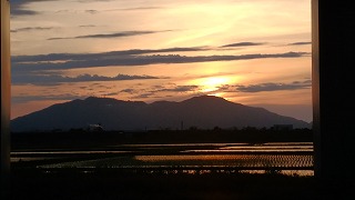 日もだいぶ長くなり、多宝山に沈むようになりました。