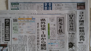 読み応えのある、コロナ対策の政府2次補正と本県の対応を伝える新聞各紙。