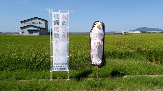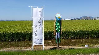 【案山子】 昨夜は公舎に泊まり朝地元に戻り、懸案だった案山子勢揃いを見学しました。地元小池地区の第一まちづくり協議会が行っているこの行事も今ではすっかり定着し、年々レベルが上がってきてますが、今年は特に新型コロナ僕滅を中心に関連した作品が多くありました。 力作をご覧ください。