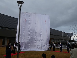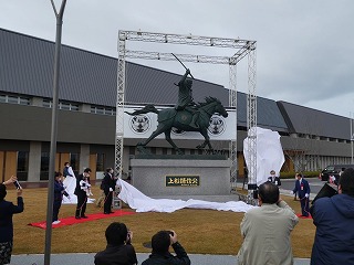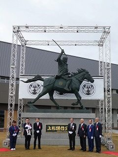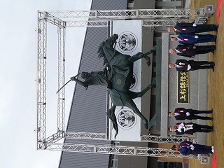 10時、上越市にある県立武道館(愛称は謙信公武道館)開業1周年を記念して、上越市に本社のある田中産業㈱様より上杉謙信公騎馬像が県へ贈呈されることになり、その除幕式に花角知事共々出席してきました。