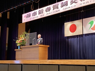 13時30分、燕市新春賀詞交換会に出席。今年は主催者と来賓の挨拶だけでめいっし交換も無く散会。