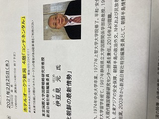 12時、新潟日報政経懇話会に出席。お馴染みの伊豆見 元氏より最近の北朝鮮情勢についての講演がありました。