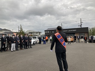 17時、分水スーパーマルイ駐車場街頭演説。
