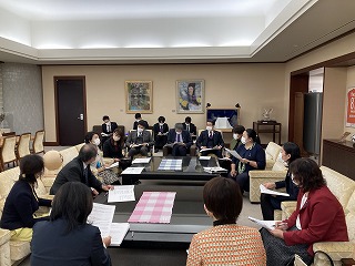 【説明聴取】 13時30分より財政課・男女共同参画推進課・議会事務局それぞれより説明聴取の間に、県商工会議所連合会からの新年度予算要望についても聴取しました。