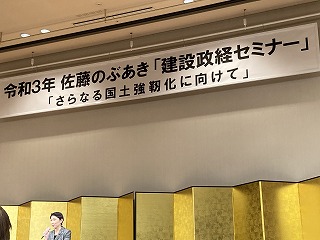 18時30分、佐藤信秋参議院議員の「佐藤のぶあき建設政経セミナー」に出席。国会開会日とあって国会議員の姿は疎らでしたが、中央より小渕優子衆議院議員が講師として来県され、約30分の講演をされた後トンボ帰りで戻られました。