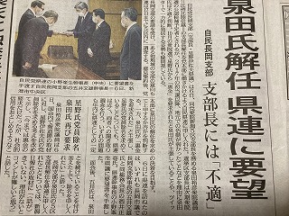 泉田衆議院議員の一方的なツイッター投稿により、地元5区長岡支部より泉田支部長解任申請が県連に提出され、小野幹事長と一緒に対応しました。
