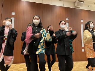 加藤先生も参加。真ん中のピンクのかっぽう着姿