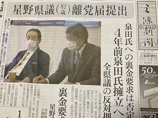 【緊急党議】 9時45分、星野先生の離党届提出を受け、緊急党議が開かれ幹事長より報告がありました。