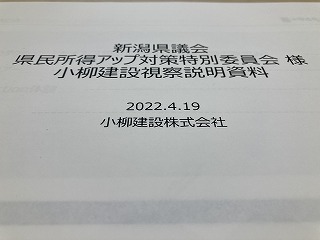 次に加茂市の小柳建設㈱加茂本店を訪問。S20年創業の土木・建設・除雪の他文化財調査・河川浚渫を手掛け、県外11都府県に支店・営業所を置く県央最大手のゼネコンです。