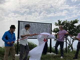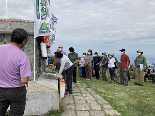 日差しが強く汗ばむほどでしたが、時おり日本海側から爽やかな風が吹く絶好なお日和のもと、参加者全員による献花や代表者の献酒、説明看板の除幕式に古野会長の「高頭仁兵衛と日本山岳会」の記念講演で閉式となり帰宅しました。