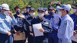 地元区長さんや県土木部長より説明を。