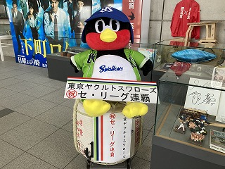 ロビーにはセリーグ優勝を祝いヤクルトスワローズのつば九郎がお出迎え。