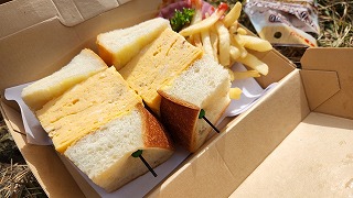 当日宿泊する櫻家さんで用意して頂いた昼食は、たまごサンドでした。こんなに分厚いたまごは初めてでした。味は勿論大変美味でした。