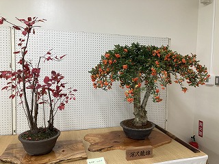その後、吉田産業会館で開催の吉田地区文化展で盆栽展にお邪魔しました。