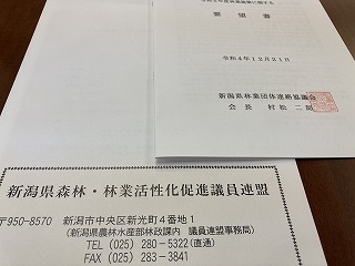 12時、森林林業活性化議連に出席。県内林業関係団体より新年度予算要望を聴取。