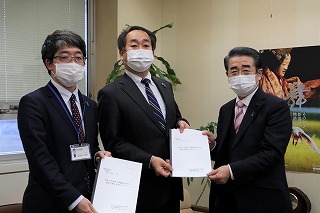 小岩知事政策局長に(中)と伊地知財政課長(左)に。