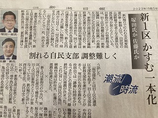 新1区についても、支部長選任が最終目的でなく、来るべき衆院選挙での必勝を期すことが最終目的であることから、可能な限り融和を図りたいと考えていましたが・・・状態です。