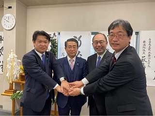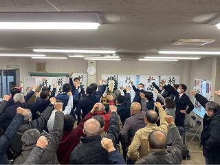 9時。選挙対策用事務所開所式。スペースの関係で関係者のみの出席となりましたが、細田・鷲尾両代議士に鈴木市長から来賓としてご臨席いただき、最後に岡山秀義燕市議の力強いガンバローコールで締めて頂きました。