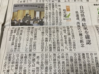 13時30分、新潟市内のホテルで県連各支部長・幹事長会議を開催。春の統一地方選に向けての説明と勝利に向けてお願い致しました。