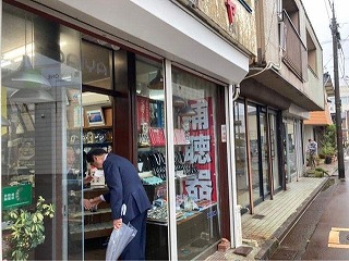 10時より、小雨そぼ降る中、小林由明市議のご案内で商店街に挨拶へ。